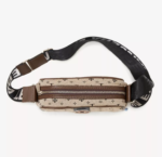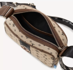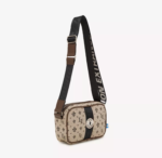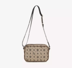 Este producto esta diseñado para llevar los esenciales. El tamaño es ideal tanto como para viajar como para usarla todos los días. Tiene tira regulable y bolsillo interno. Esta confeccionada con tela jacquard LE beige y negro.