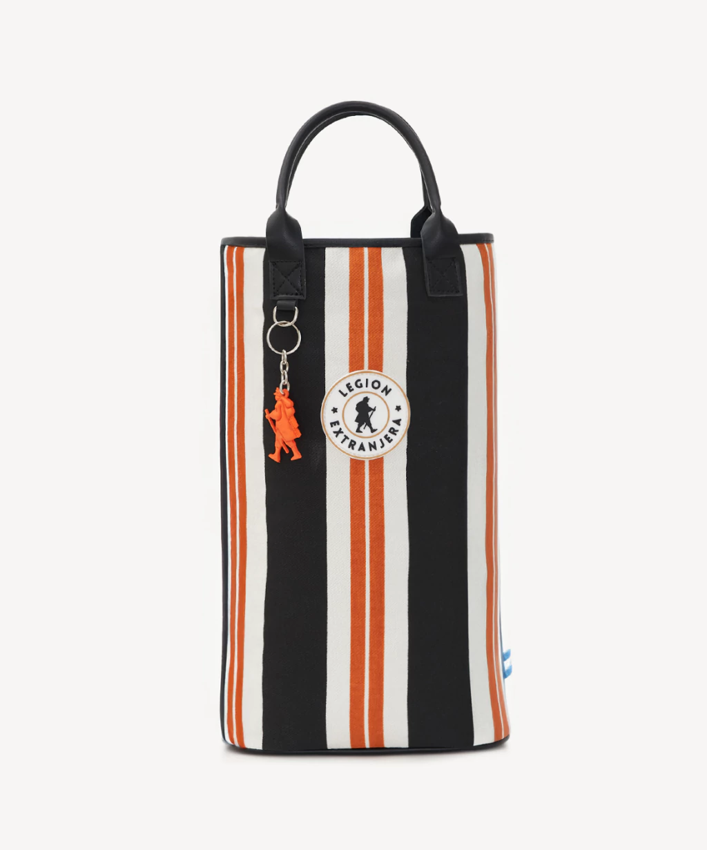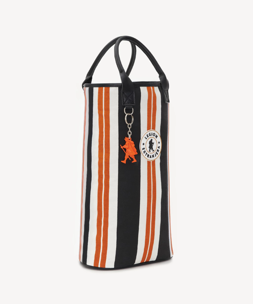 Nueva propuesta de matera, abierta y de facil acceso. Tiene manijas cortas de simil cuero canela, ideal para usar todo el dia y que te acompañe siempre. Sobre el frente lleva el clásico logo de goma blanco con detalles en canela y negro. Su interior se encuentra forrado con tela de facil lavado. Cuenta con el llavero legionario naranja.