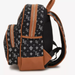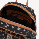 Mochila confeccionada con tela jacquard LE beige y negro. En el interior cuenta con un bolsillo con cierre. Las correas se encuentran armadas de la misma tela, con una base de red spacer para brindar mayor comodidad. Cuenta con escaleritas para poder ajustar el largo de las mismas. Todos los herrajes están bañados en oro. La mochila cuenta con una base de resfuerzo de simil cuero marrón chocolate para darle una larga vida útil. Exterior personalizado con logo LE de goma con base de simil cuero chocolate haciendo juego con las vistas de cierre, y cinta tejida color bordó. El bolsillo plaqué externo con cierre, es perfecto para guardar las pertenencias a las que queremos acceder con una mayor facilidad.