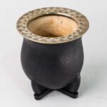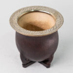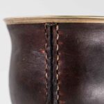 Mate uruguayo PREMIUM, calabaza forrada en cuero, virola de alpaca cincelada a mano.