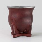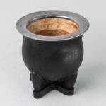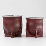 Mate de calabaza nacional, forrado en cuero con virola de acero inoxidable lisa