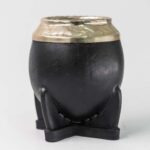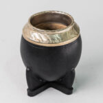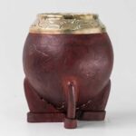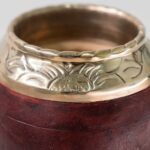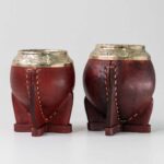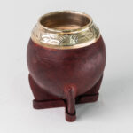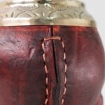 Mate uruguayo de calabaza forrada en cuero con virola cincelada de acero inoxidable.