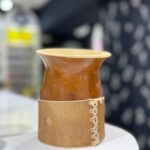 - Base forrada en cuero, que le da firmeza y un toque rústico.