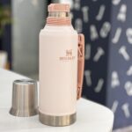 La tapa de acero inoxidable se convierte en mate y el termo Stanley mantiene tu agua a la temperatura ideal.
